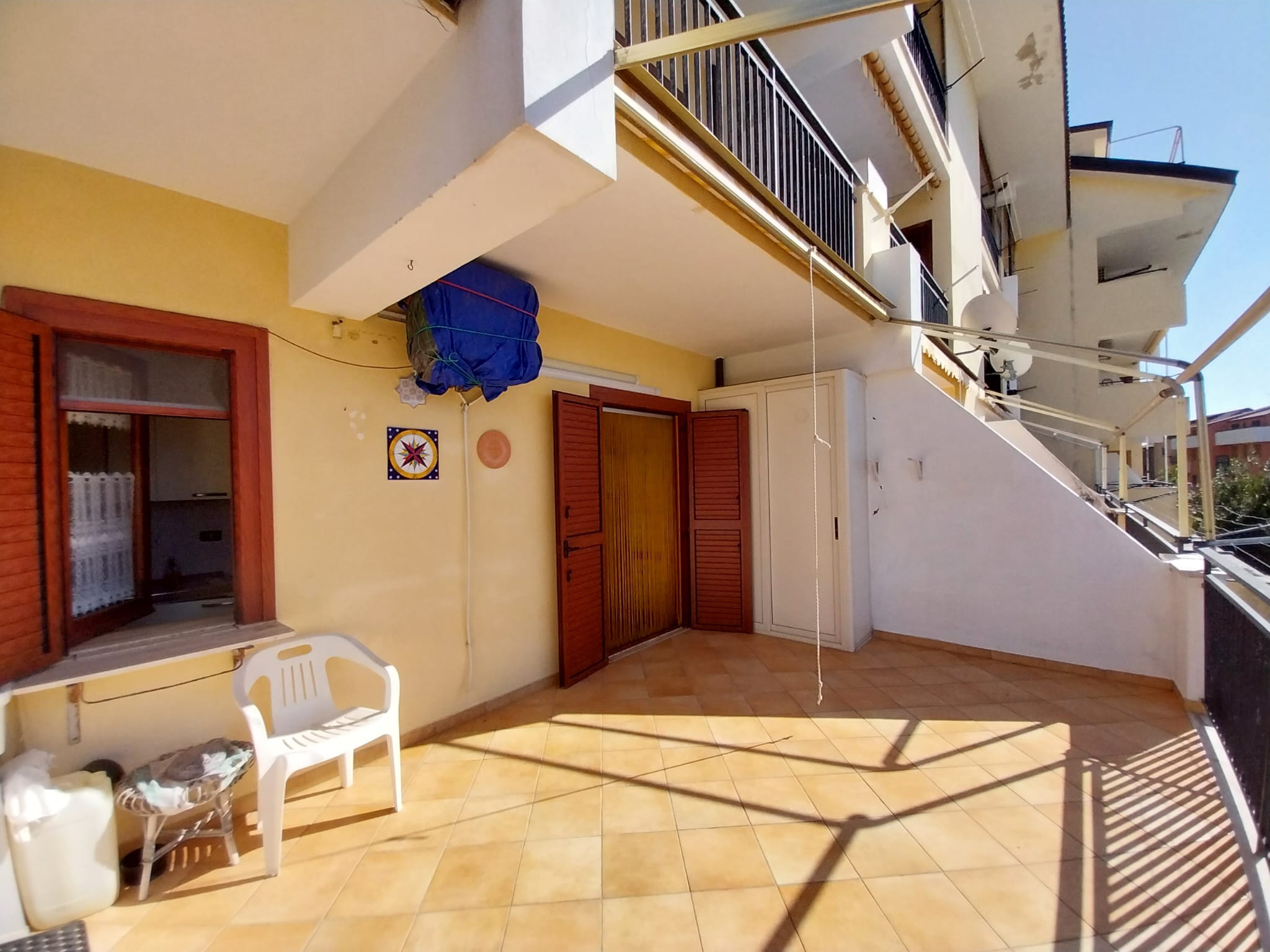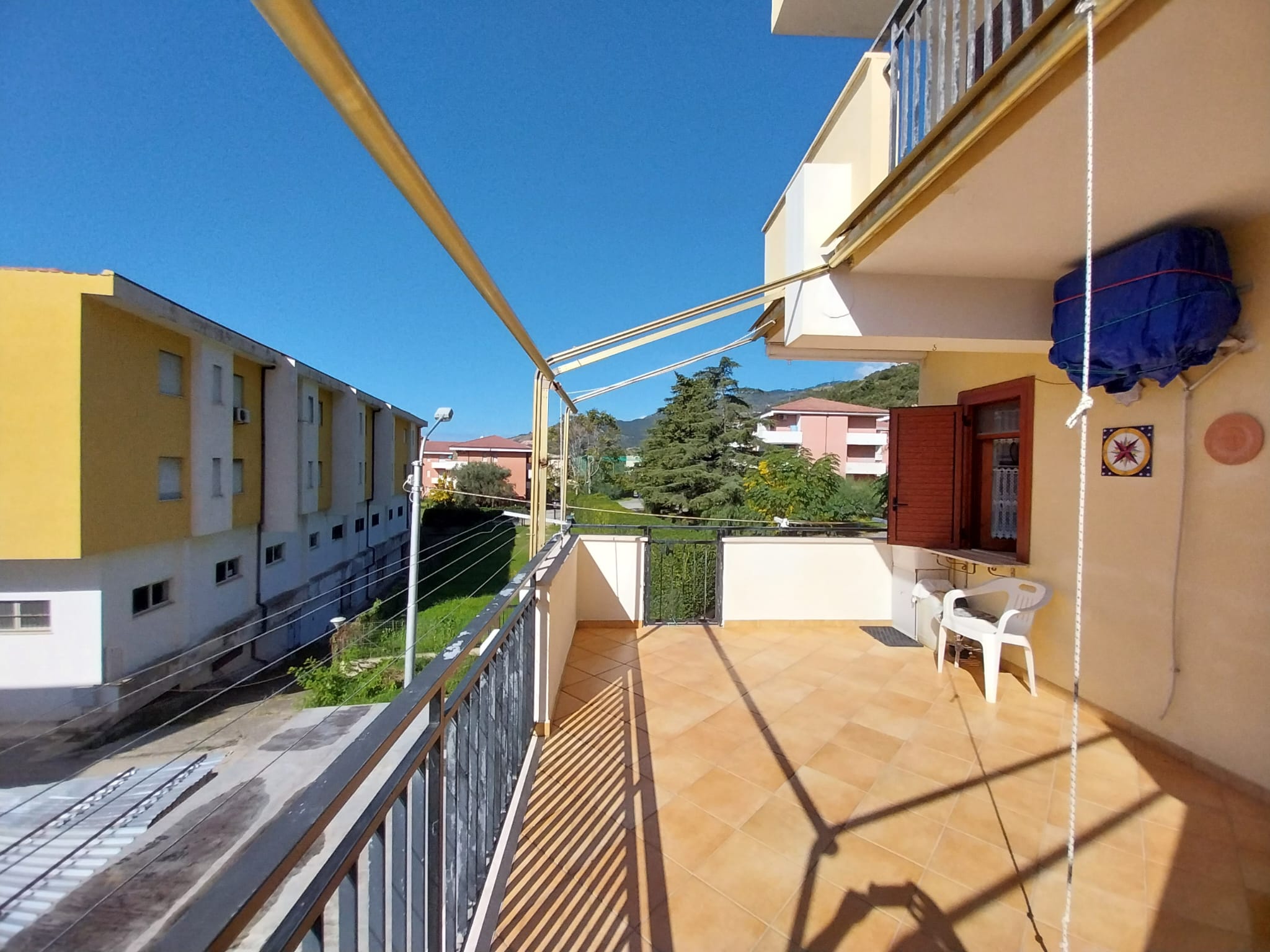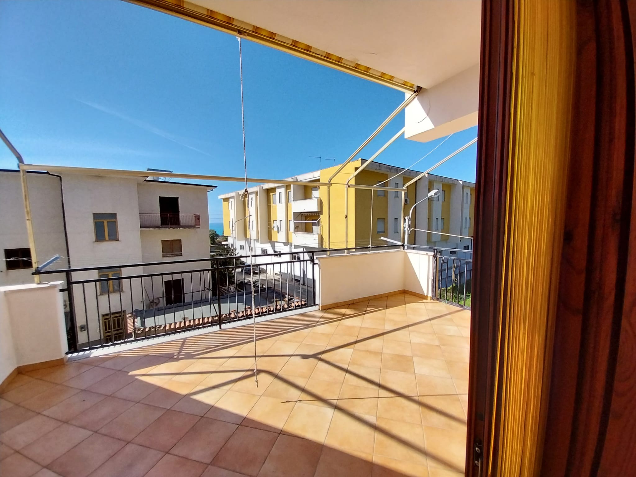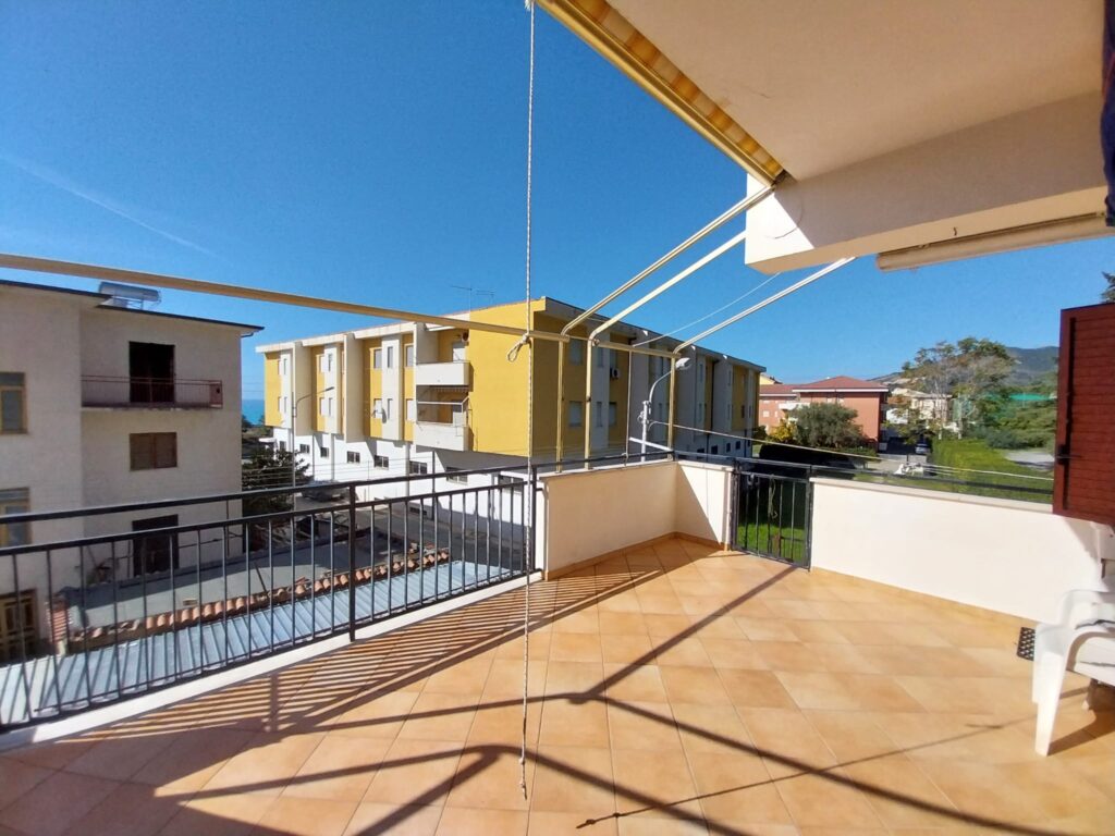 Proponiamo in vendita a Guardia Piemontese (CS), precisamente in via Ragusa, a soli 150 mt dal mare, appartamento di circa 55 mq con ampio terrazzo posto al piano rialzato di una palazzina. L’immobile è così composto: soggiorno, angolo cottura, due camere, bagno, terrazzo vista mare (di 20 mq) munito di tende da sole dove trova posto un comodo ripostiglio e posto auto condominiale. Gli infissi esterni sono in alluminio con persiana orientabile mentre quelli interni sono in legno e tutti sono muniti di zanzariera.